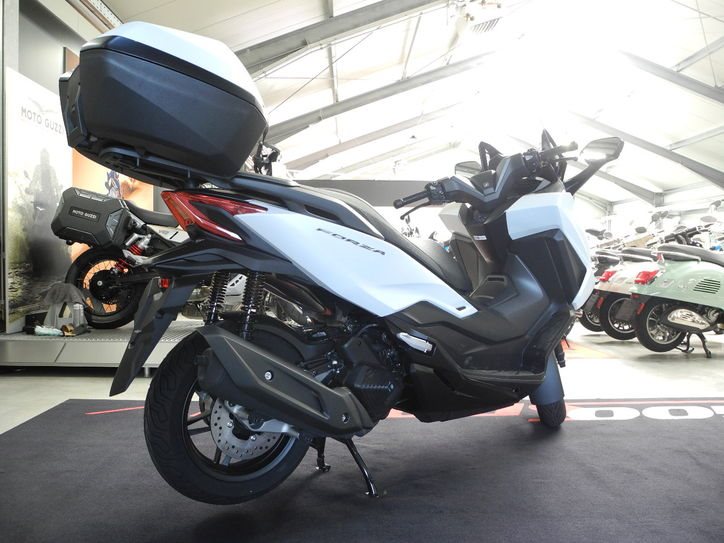 Neufahrzeug Honda Forza 350 Modell 2025 in weiß vom Honda Vertragshändler mit 6 Jahren Herstellergarantie bei Einhaltung der Serviceintervalle